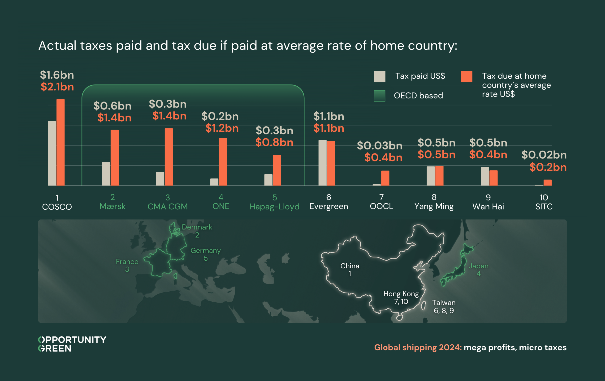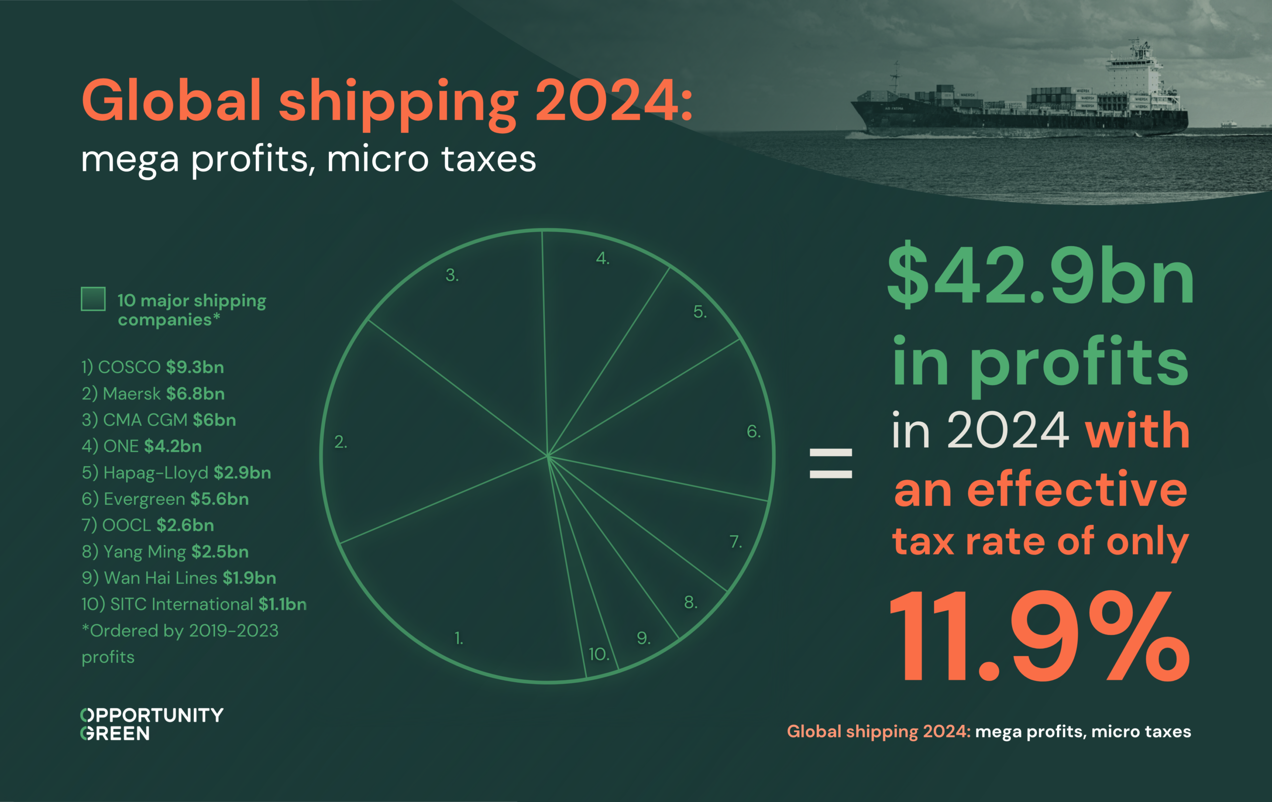 Last year, Opportunity Green’s Global Shipping 2023: mega profits, micro taxes revealed that the world’s largest shipping companies made more than $300bn in profits from 2019 to 2023.